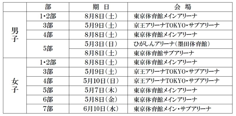 4月12日(日)駒沢屋内球技場(男子・女子一般団体戦 個人戦)